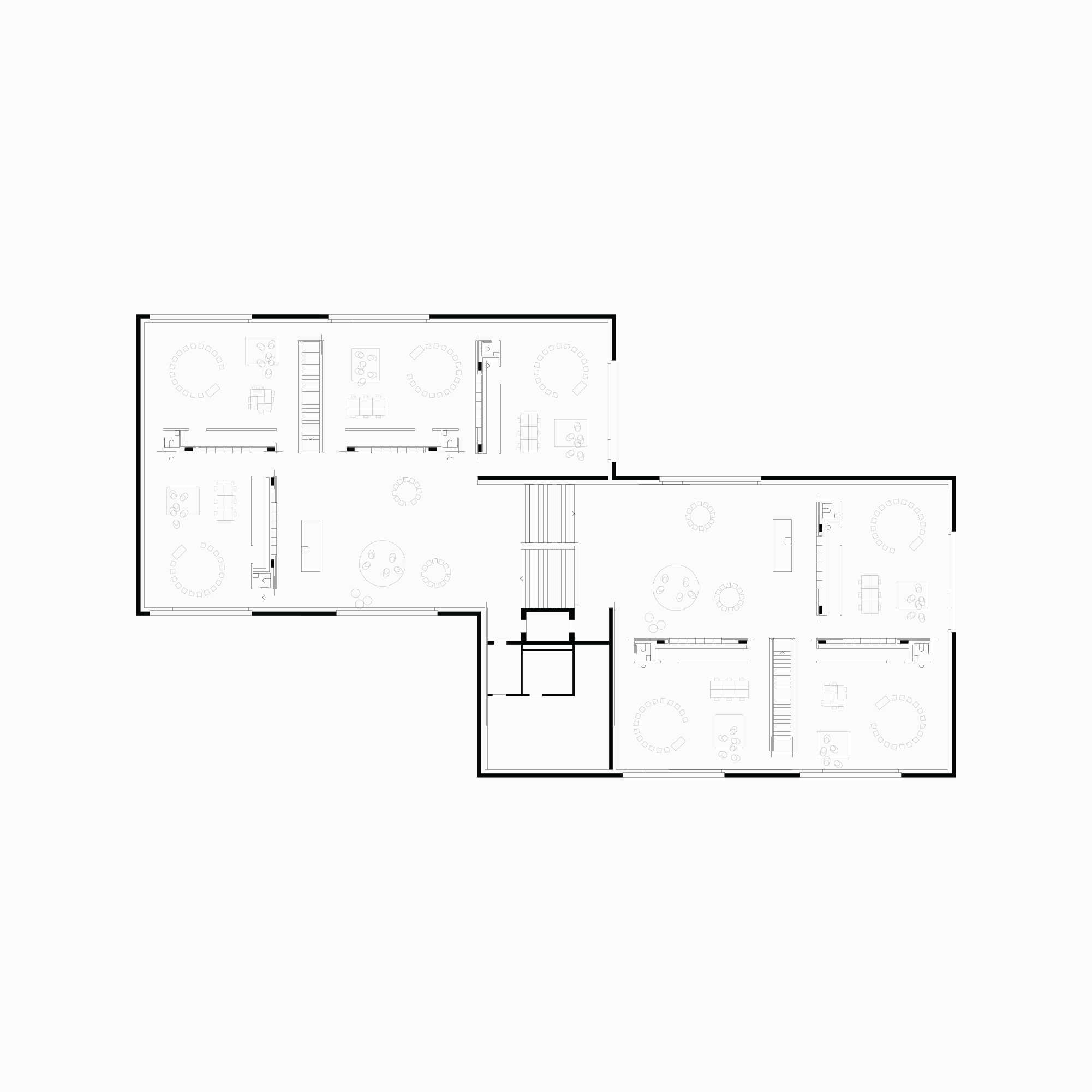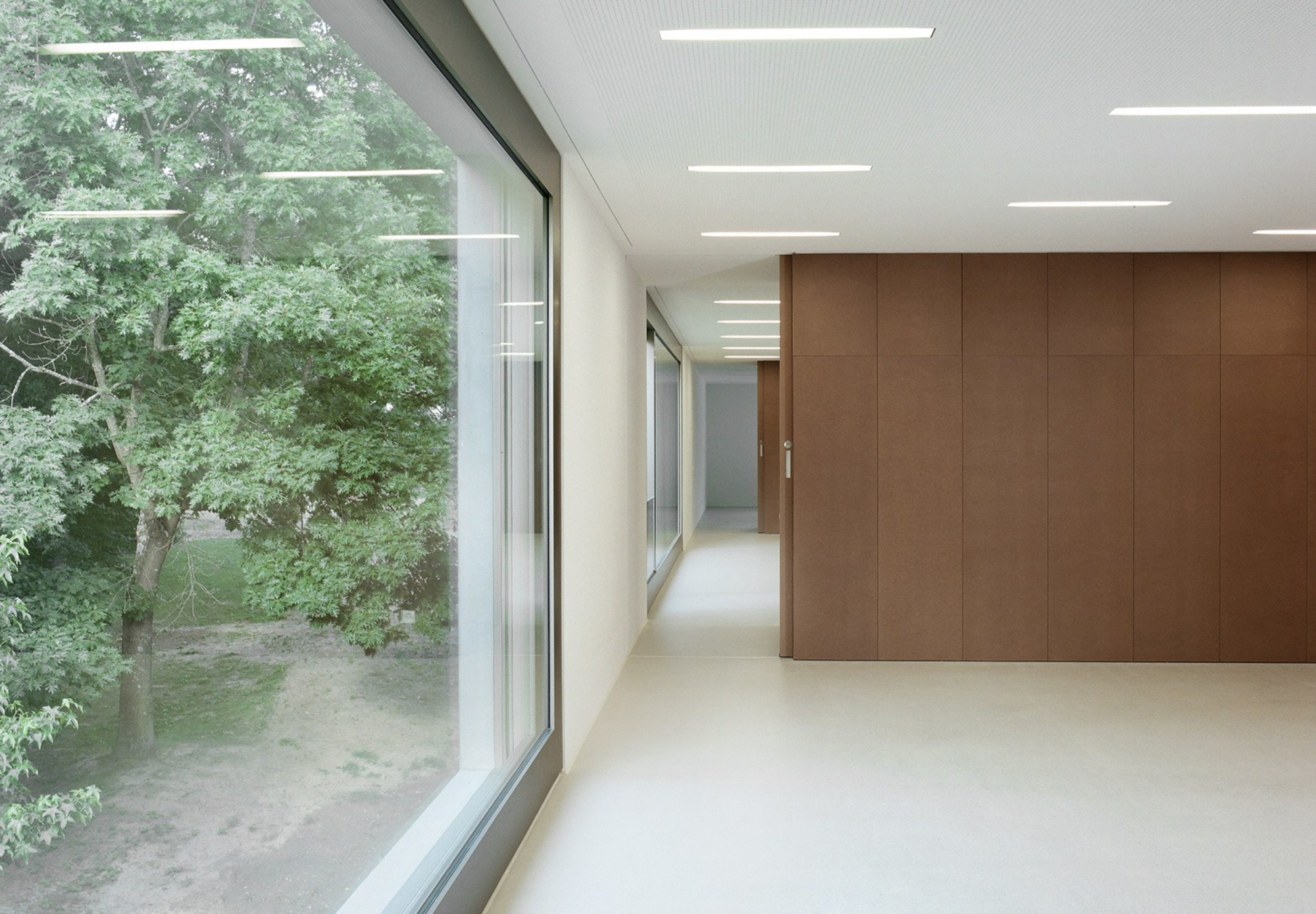 Modulare Innenarchitektur für variable Gestaltung, die wiederum einen fächerübergreifenden Unterricht ermöglicht. Durch das Öffnen oder Schliessen bestimmter Schiebetüren lässt sich der Rauminhalt der Unterrichtsräume verändern.