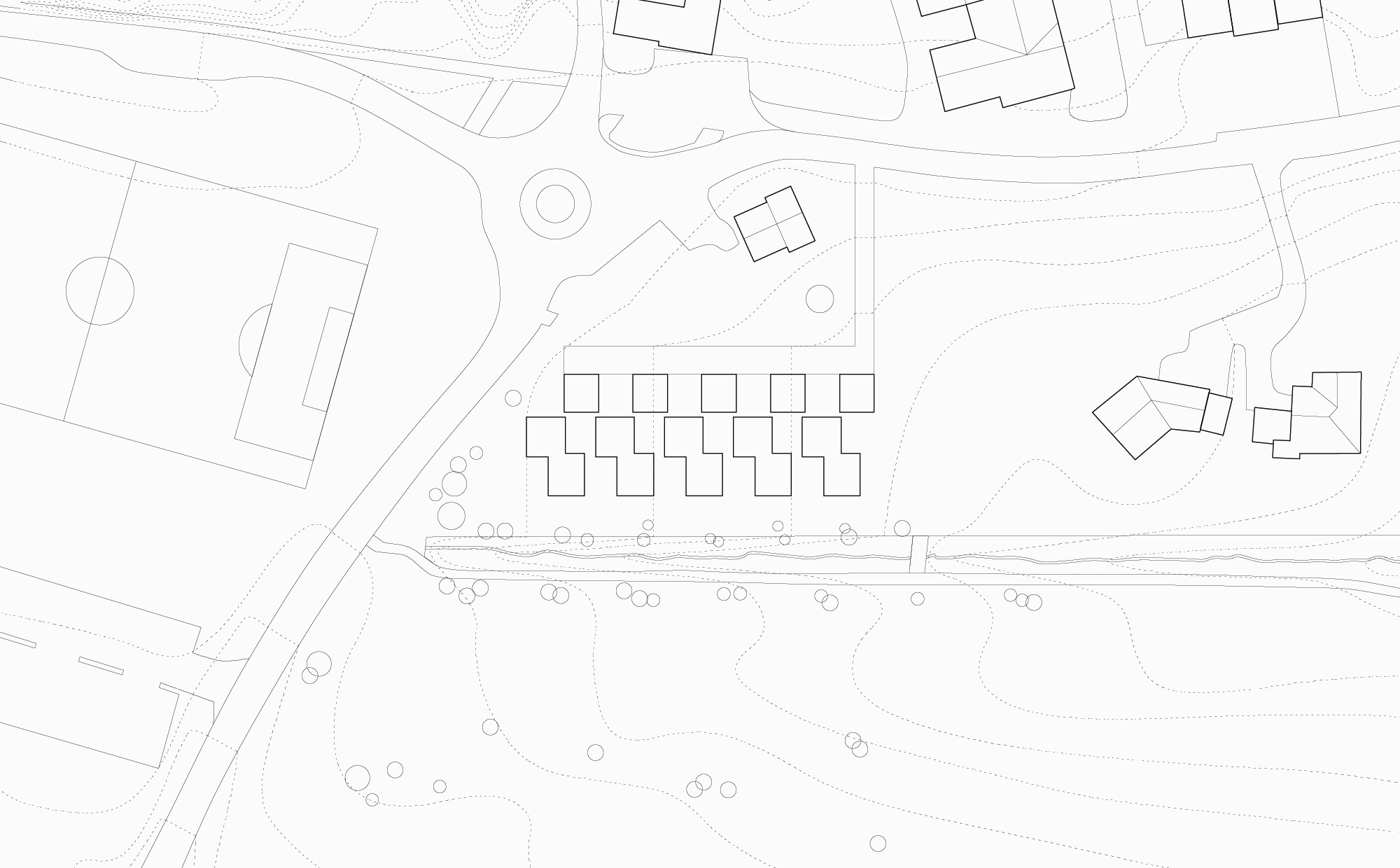 Le projet propose une densité particulière dans la disposition des volumes. Celle-ci permet de qualifier les espaces extérieurs, évitant ainsi les surfaces résiduelles. Un choix radical dans le positionnement des ouvertures permet de résoudre les questions de privacité.