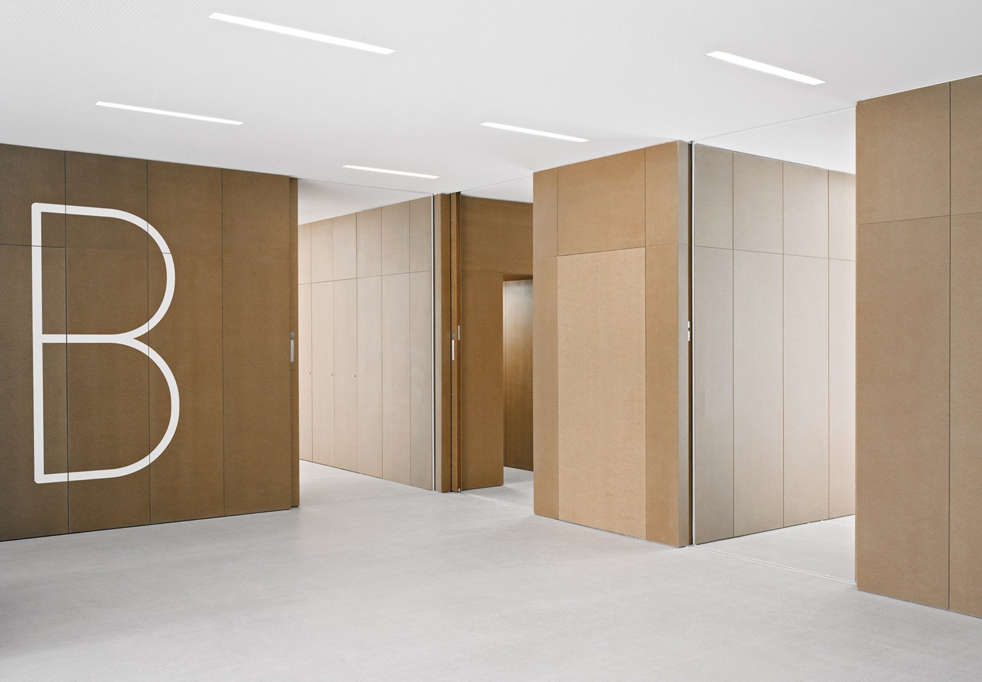 Architecture intérieure modulable permettant un enseignement décloisonné. En ouvrant ou en fermant certaines portes coulissantes, les espaces d’enseignement sont redéfinis.