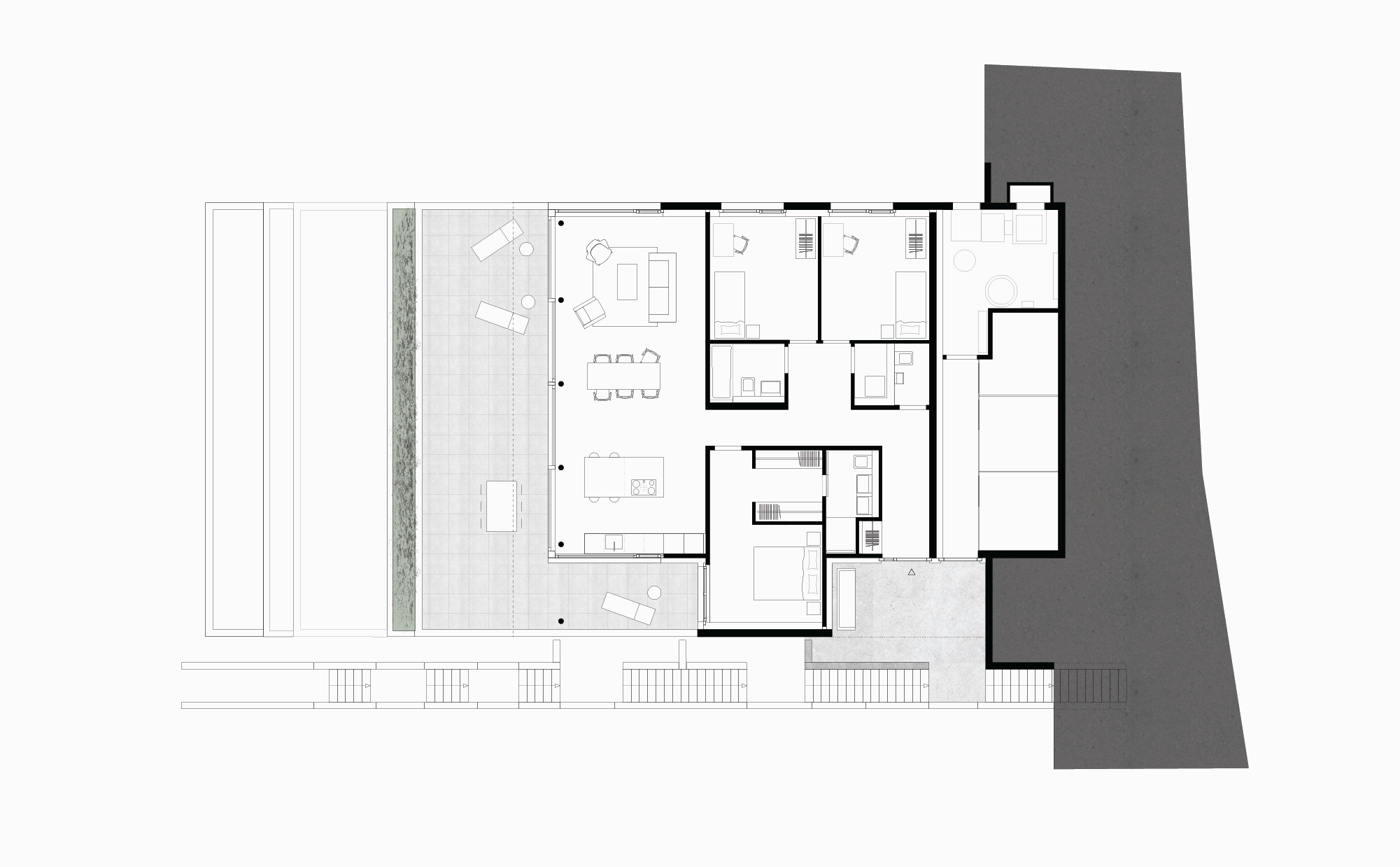Les appartements s’orientent naturellement vers le sud, tirant partie d’une configuration qui offre de grandes terrasses avec vue. La générosité des baies vitrées répond à celle du paysage, appréciable depuis l’intérieur autant que depuis les terrasses.